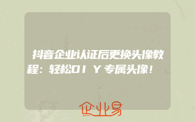- 抖音企业认证后更换头像教程:轻松DIY专属头像!