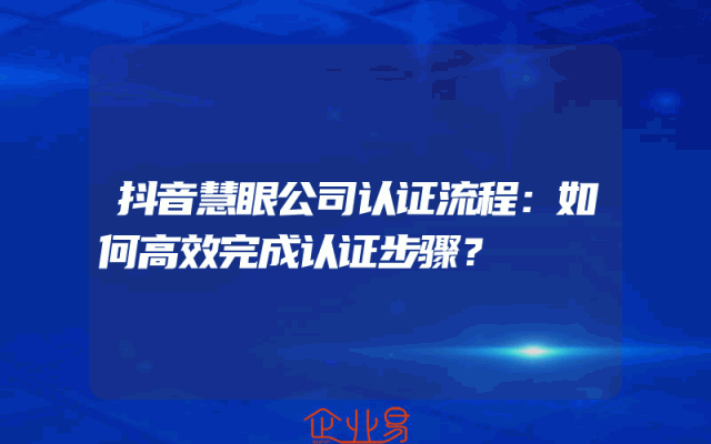 - 抖音慧眼公司认证流程:如何高效完成认证步骤?