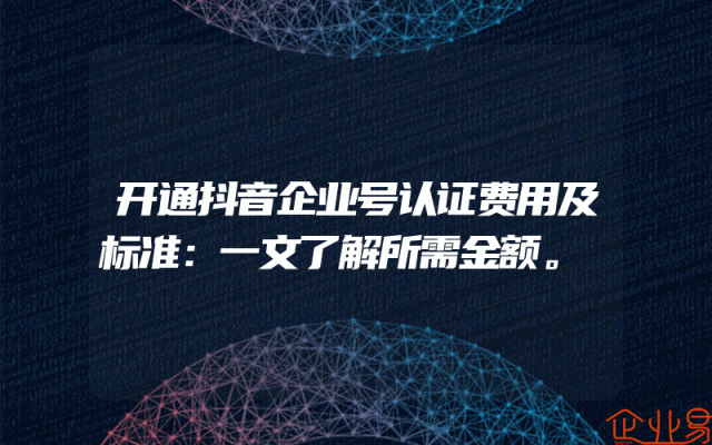 - 开通抖音企业号认证费用及标准:一文了解所需金额。