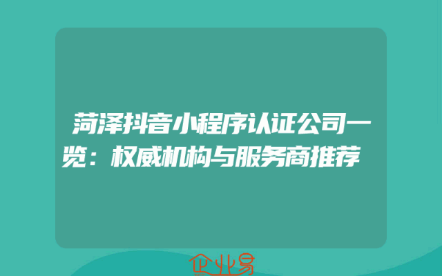 - 菏泽抖音小程序认证公司一览:权威机构与服务商推荐
