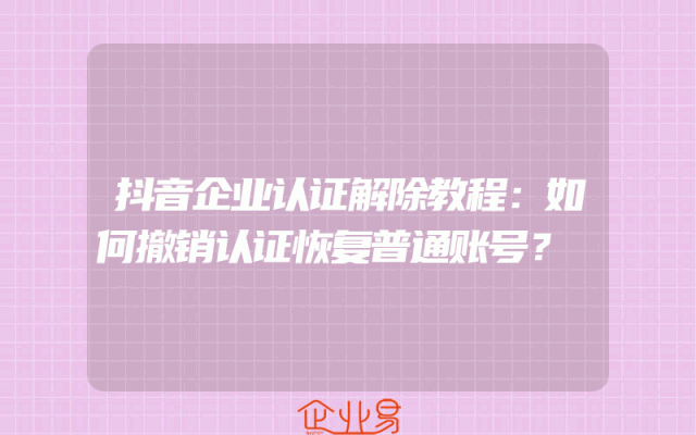 - 抖音企业认证解除教程:如何撤销认证恢复普通账号?