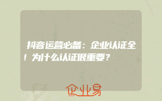 - 抖音运营必备:企业认证全!为什么认证很重要?