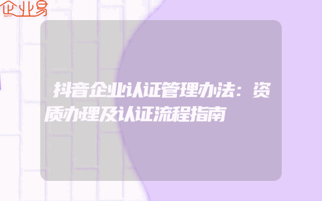 - 抖音企业认证管理办法:资质办理及认证流程指南