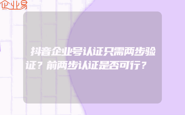 - 抖音企业号认证只需两步验证?前两步认证是否可行?