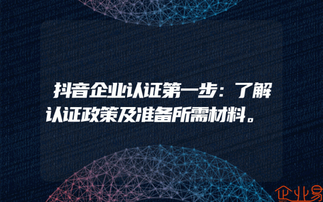 - 抖音企业认证第一步:了解认证政策及准备所需材料。