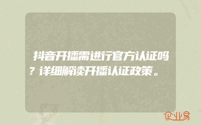 - 抖音开播需进行官方认证吗?详细解读开播认证政策。