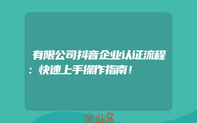 - 有限公司抖音企业认证流程:快速上手操作指南!