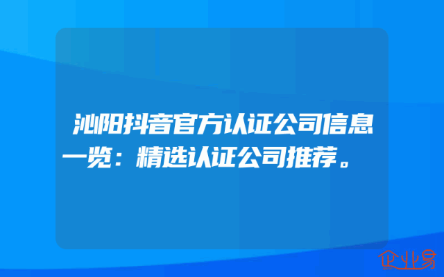 - 沁阳抖音官方认证公司信息一览:精选认证公司推荐。