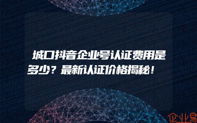 - 城口抖音企业号认证费用是多少?最新认证价格揭秘!