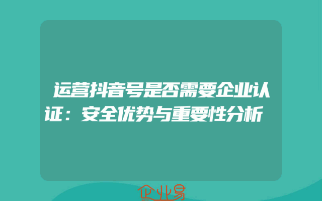- 运营抖音号是否需要企业认证:安全优势与重要性分析