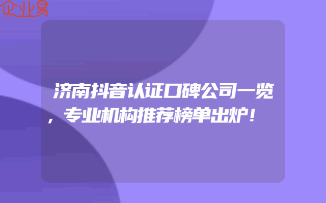 - 济南抖音认证口碑公司一览,专业机构推荐榜单出炉!