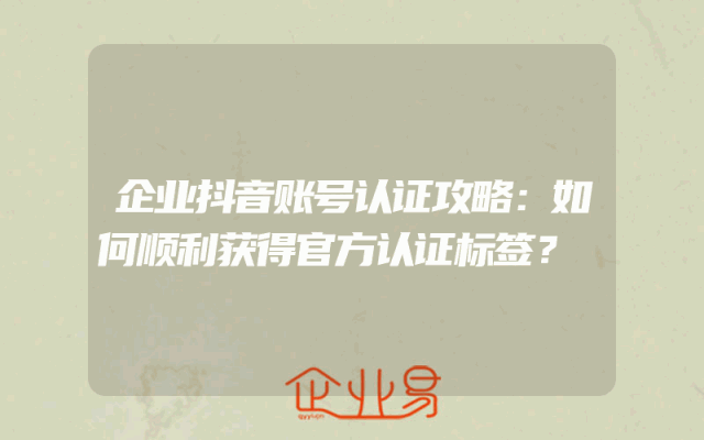 - 抖音传媒公司企业认证流程:快速完成认证攻略!