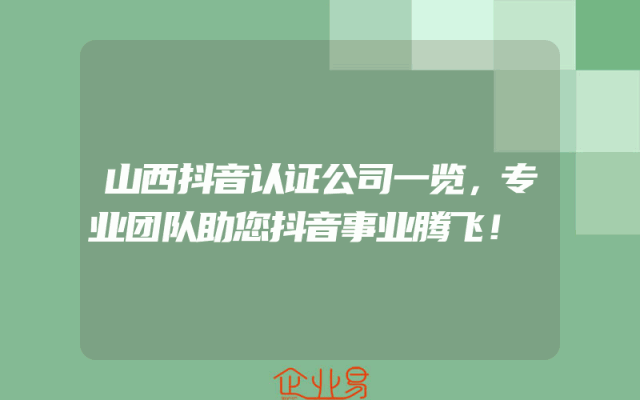 - 山西抖音认证公司一览,专业团队助您抖音事业腾飞!