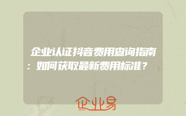 - 企业认证抖音费用查询指南:如何获取最新费用标准?