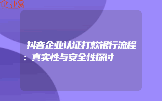- 抖音企业认证打款银行流程:真实性与安全性探讨