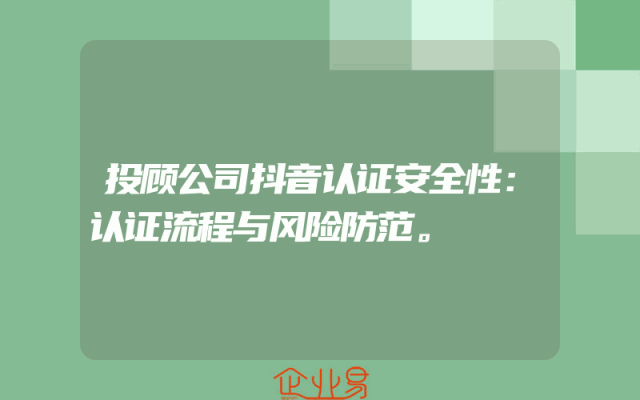 - 投顾公司抖音认证安全性:认证流程与风险防范。