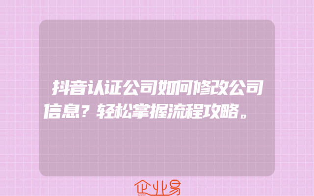 - 抖音认证公司如何修改公司信息?轻松掌握流程攻略。