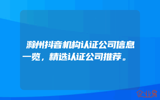 - 滁州抖音机构认证公司信息一览,精选认证公司推荐。