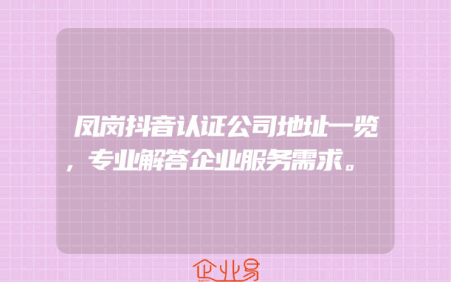 - 凤岗抖音认证公司地址一览,专业解答企业服务需求。