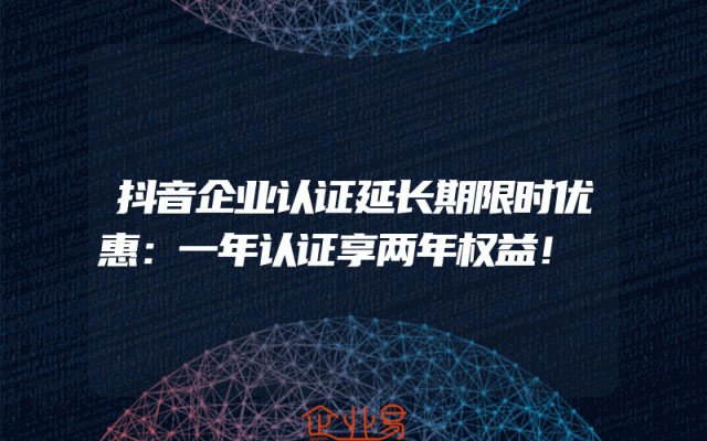 - 抖音企业认证延长期限时优惠:一年认证享两年权益!