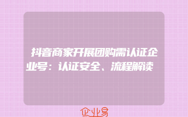 - 抖音商家开展团购需认证企业号:认证安全、流程解读