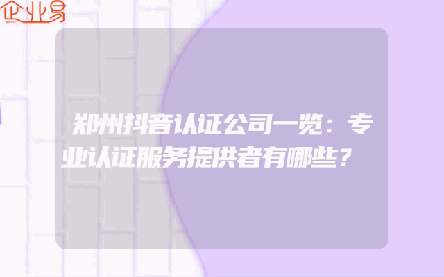 - 郑州抖音认证公司一览:专业认证服务提供者有哪些?