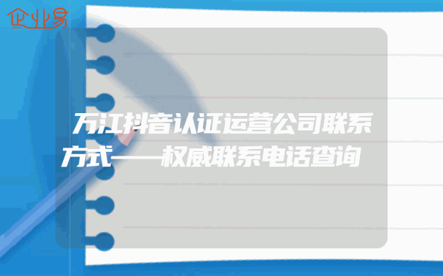 - 万江抖音认证运营公司联系方式——权威联系电话查询