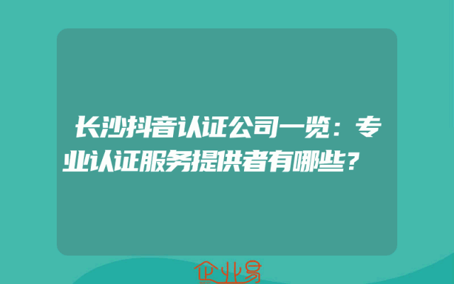 - 长沙抖音认证公司一览:专业认证服务提供者有哪些?