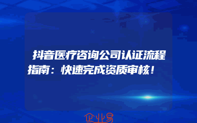 - 抖音医疗咨询公司认证流程指南:快速完成资质审核!