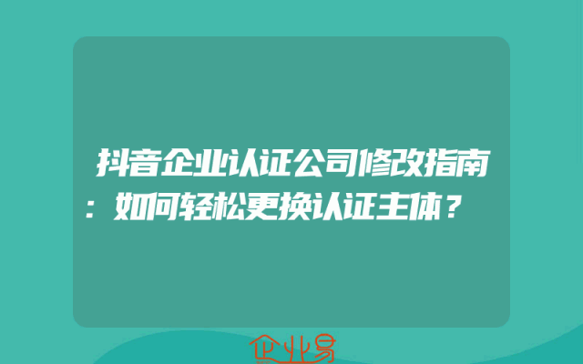 - 抖音企业认证公司修改指南:如何轻松更换认证主体?