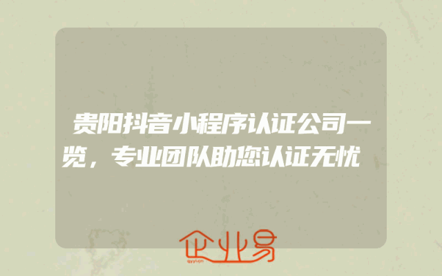 - 贵阳抖音小程序认证公司一览,专业团队助您认证无忧
