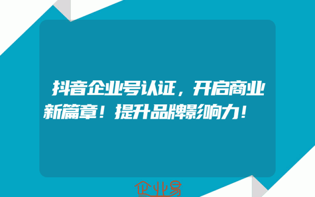 - 抖音企业号认证,开启商业新篇章!提升品牌影响力!