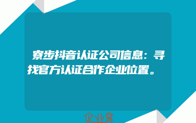 - 寮步抖音认证公司信息:寻找官方认证合作企业位置。