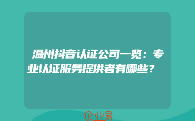 - 温州抖音认证公司一览:专业认证服务提供者有哪些?