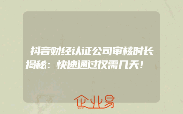 - 抖音财经认证公司审核时长揭秘:快速通过仅需几天!