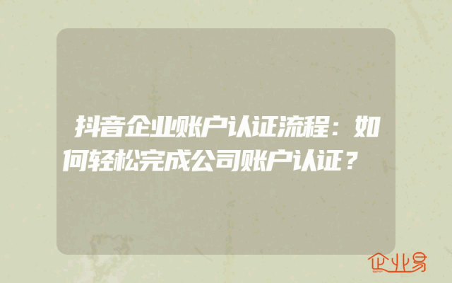 - 抖音企业账户认证流程:如何轻松完成公司账户认证?