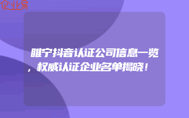 - 睢宁抖音认证公司信息一览,权威认证企业名单揭晓!