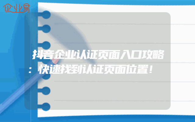 - 抖音企业认证页面入口攻略:快速找到认证页面位置!