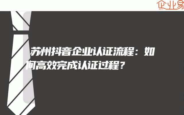- 苏州抖音企业认证流程:如何高效完成认证过程?