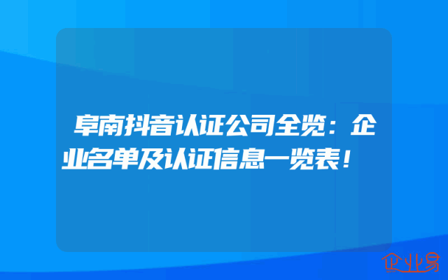 - 阜南抖音认证公司全览:企业名单及认证信息一览表!
