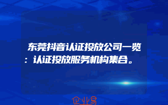 - 东莞抖音认证投放公司一览:认证投放服务机构集合。