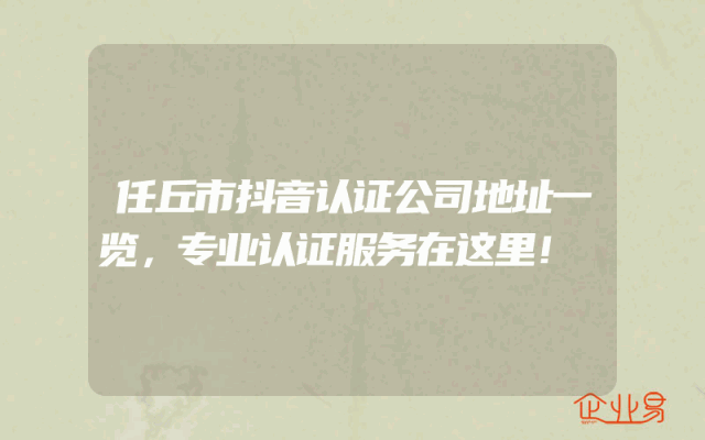 - 任丘市抖音认证公司地址一览,专业认证服务在这里!
