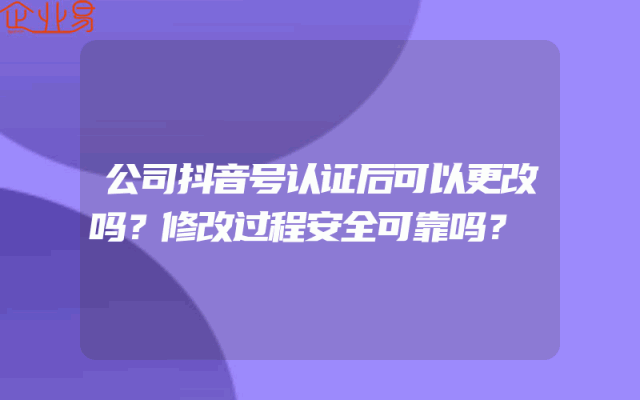 - 公司抖音号认证后可以更改吗?修改过程安全可靠吗?