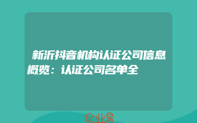 - 新沂抖音机构认证公司信息概览:认证公司名单全