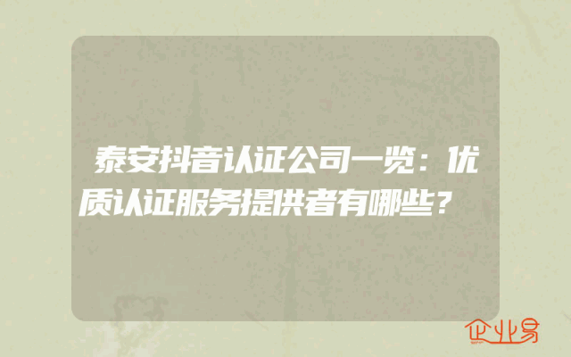 - 泰安抖音认证公司一览:优质认证服务提供者有哪些?