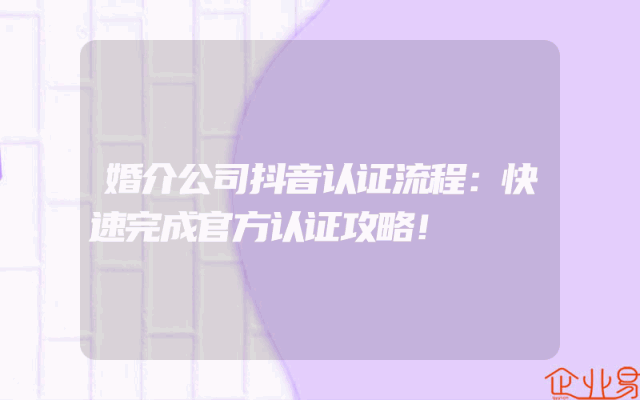- 婚介公司抖音认证流程:快速完成官方认证攻略!