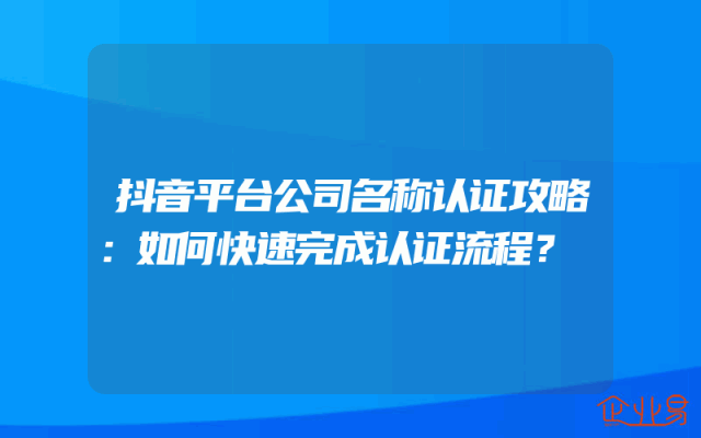 - 抖音平台公司名称认证攻略:如何快速完成认证流程?