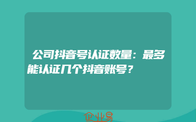 - 公司抖音号认证数量:最多能认证几个抖音账号?