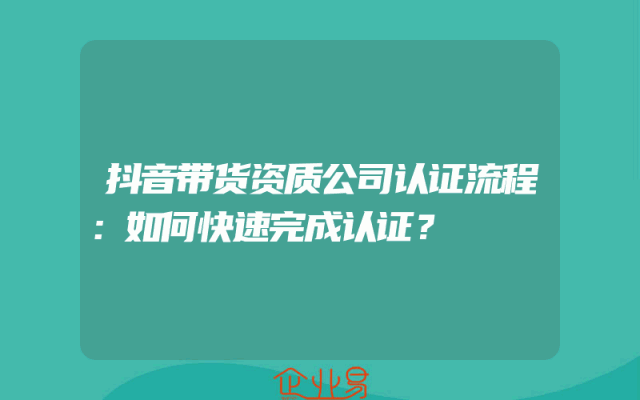 - 抖音带货资质公司认证流程:如何快速完成认证?