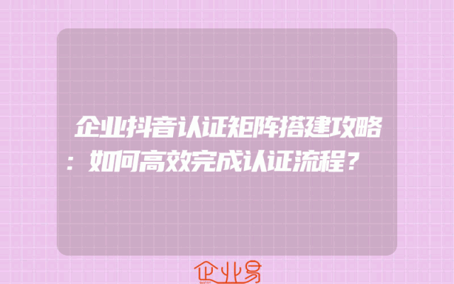 - 企业抖音认证矩阵搭建攻略:如何高效完成认证流程?